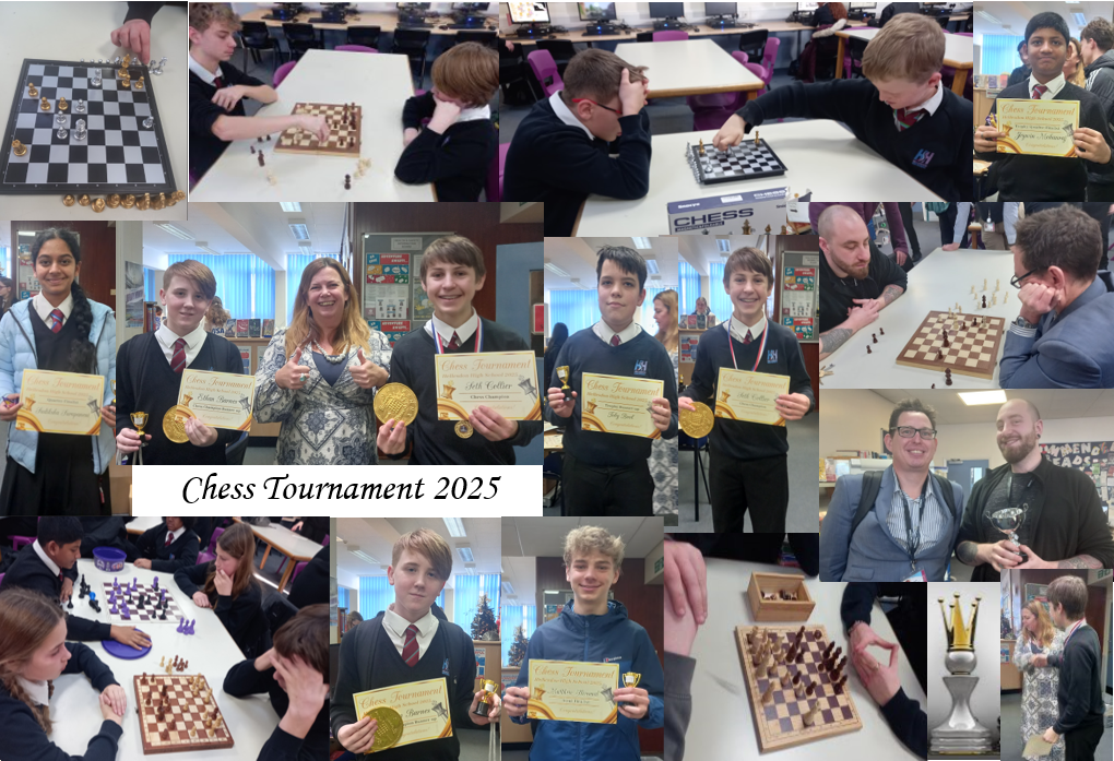 Congratulations to our overall Chess Champion 2025 Seth, runner-up Ethan, trophy winner Marshall, highest-placed Y7 Jonah and staff Chess Champion Mr Goldstein from IT!